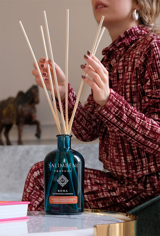Dès le début, Salimbeni Parfums accorde une grande importance au respect de notre planète, en adoptant des pratiques attentives et responsables à chaque étape de la production : nous minimisons les émissions liées aux transports, effectués exclusivement par voie terrestre ; nous n’utilisons pas de colorants et privilégions l’utilisation de ressources renouvelables et réutilisables, telles que le verre des diffuseurs et le bois naturel des bâtonnets, tout en sélectionnant les meilleures matières premières,100% Made in Italy.